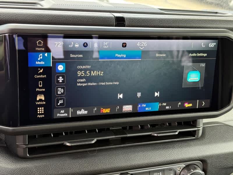 4x4, Back-Up Camera, Satellite Radio, iPod/MP3 Input, Aluminum Wheels, WiFi Hotspot, Apple CarPlay®, Brake Actuated Limited Slip Differential. MP3 Player, Child Safety Locks, Steering Wheel Controls, Rollover Protection System, Electronic Stability Control.
