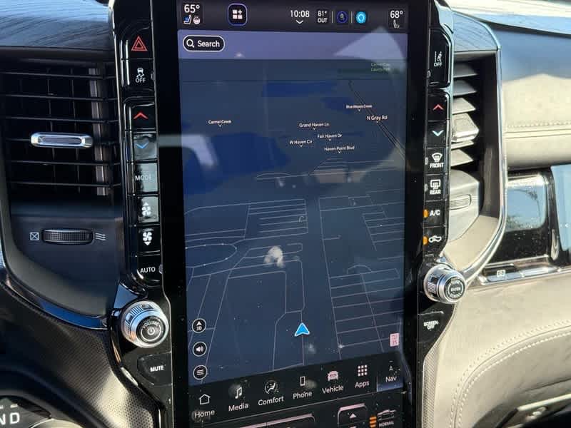 LIMITED LEVEL A EQUIPMENT GROUP Surround View Camera System, LED CHMSL Lamp, Tri-Fold Tonneau Cover, Traffic Sign Recognition, RamBox Cargo Management System, Hands-Free Active Driving Assist System, Head Up Display, Evasive Steer Assist, Drowsy Driver Detection, Exterior 115V AC Outlet, Intersection Collision Assist System, Smartphone As A Key Capable, 14.4 Touchscreen Display, Radio: Uconnect 5 Nav w/14.4 Display, 240 Amp Alternator, 12-Way/1-Way Trailer Connector, TRANSMISSION: 8-SPEED AUTOMATIC (8HP75) (STD), ENGINE: 3.0L I6 HURRICANE HO TWIN TURBO ESS (STD), DUAL-PANE PANORAMIC SUNROOF LED Dome/Reading Lamp, Dome Dual LED Reading Lamp. Ram Limited with Granite Crystal Metallic Clearcoat exterior and Black interior features a Straight 6 Cylinder Engine.