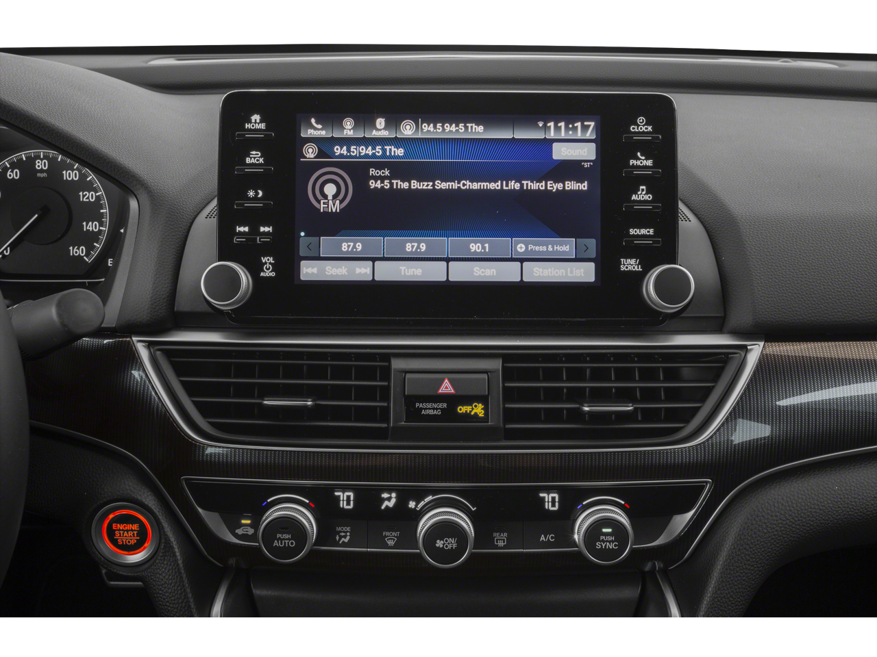 • Radio: 180-Watt AM/FM Audio System -inc: 8 speakers, 8" display audio w/high-resolution electrostatic touch-screen, knobs and hard keys for primary controls and customizable feature settings, Bluetooth® HandsFreeLink, Bluetooth® streaming audio, SMS text message function, Radio Data System (RDS), Speed-Sensitive Volume Compensation (SVC), HondaLink, Apple CarPlay integration, Android Auto integration, 2 2.5-amp USB smartphone/audio interface ports in front console, 2 2nd-row 2.5-amp USB charging ports, illuminated steering wheel-mounted controls and gloss black fin-type roof-mounted antenna