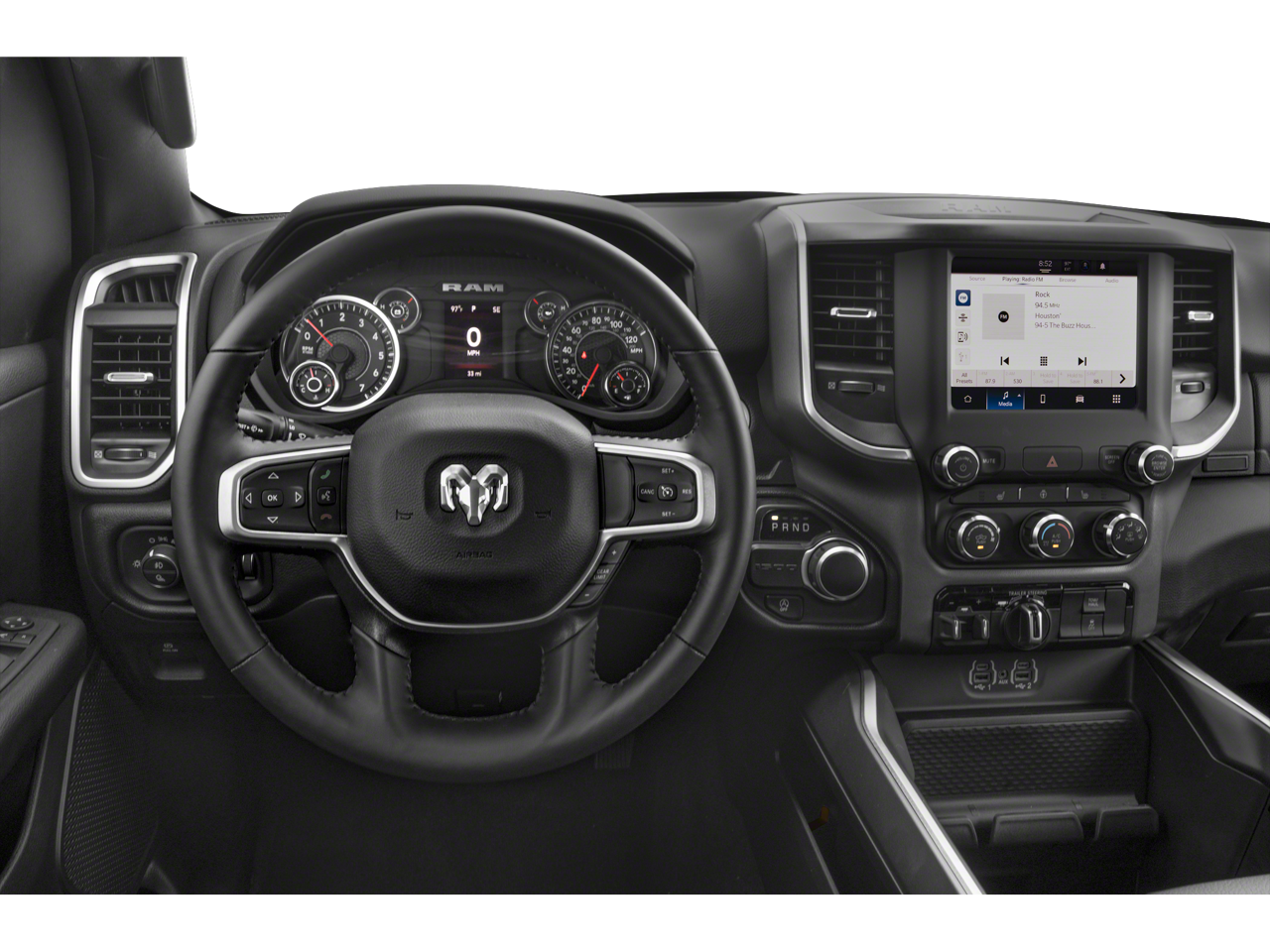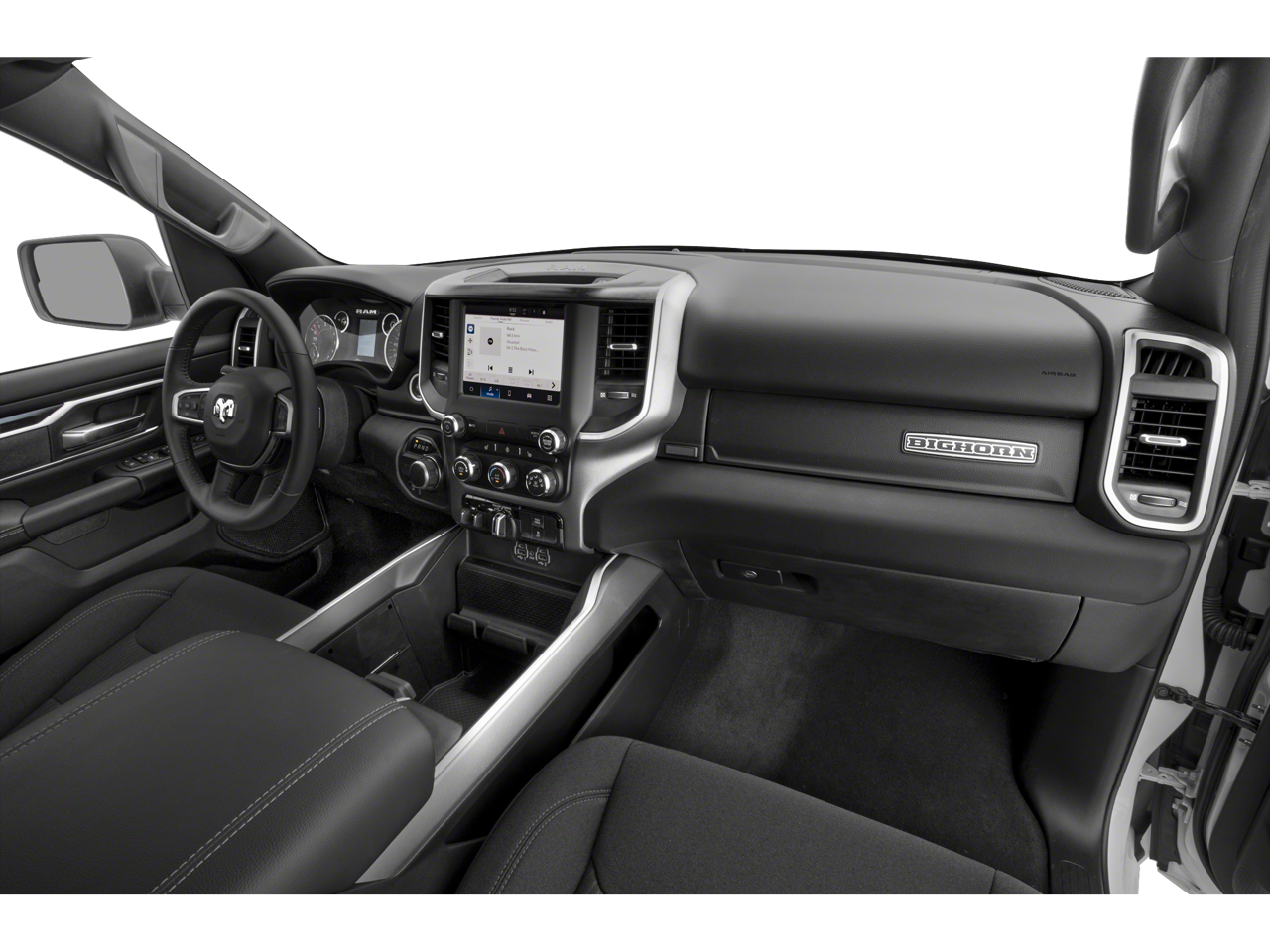 BIG HORN LEVEL 2 EQUIPMENT GROUP Google Android Auto®, USB Host Flip, Power Adjustable Pedals, For More Info, Call 800-643-2112, Front Fog Lamps, Glove Box Lamp, Media Hub w/2 Charge Only USBs, Heated Front Seats, 8.4 Touchscreen Display, Class IV Receiver Hitch, Security Alarm, Black Premium Power Mirrors, Apple CarPlay®, Remote Start System, SiriusXM Satellite Radio, 9 Amplified Speakers w/Subwoofer, 115V Auxiliary Power Outlet, Universal Garage Door Opener, Electric Shift On Demand Transfer Case, 2nd Row In Floor Storage Bins, Sun Visors w/Illuminated Vanity Mirrors, LED Footwell Lighting, Power 2-Way Driver Lumbar Adjust, Bluetooth® Handsfree Phone & Audio, Rear Window Defroster, Integrated Center Stack Radio, ParkSense Front/Rear Park Assist w/Stop, Rear View Auto Dim Mirror, Rear, WHEELS: 20 X 9 ALUMINUM CHROME CLAD, DIESEL GRAY/BLACK, DELUXE CLOTH BUCKET SEATS Power 8-Way Driver Seat, Center Console Parts Module, Bucket Seats, Manual Adjust 4-Way Front Passenger Seat, Full Length Floor Console, Rear Center Armrest, Power 2-Way Driver Lumbar Adjust, BLIND SPOT & CROSS PATH DETECTION LED Taillamps, TRANSMISSION: 8-SPEED AUTOMATIC (8HP75) (STD), ENGINE: 5.7L V8 HEMI MDS VVT ETORQUE (STD). Ram Big Horn with Patriot Blue Pearlcoat exterior and Diesel Gray/Black interior features a 8 Cylinder Engine with 395 HP at 5600 RPM*.